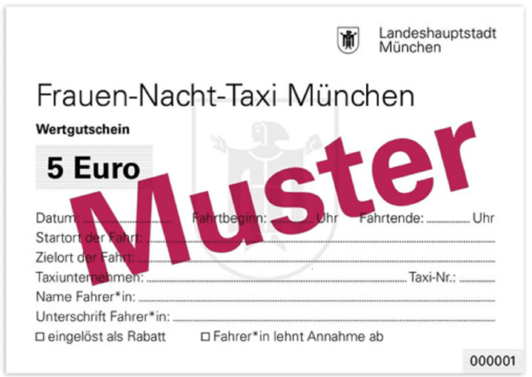 Sinn und Zweck des Frauen-Nacht-Taxi-Gutscheins, den die Stadt in Papierform bei diversen städtischen Behörden und Touristeninformationen ausgibt, ist die Möglichkeit eines sicheren Heimwegs in einem Taxi zwischen 22 und 6 Uhr.