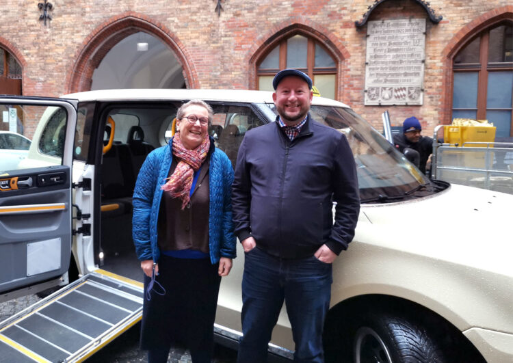 Der Behindertenbeauftragte der Stadt München, Oswald Utz hat den TX bereits getestet. Foto: Taxi Times